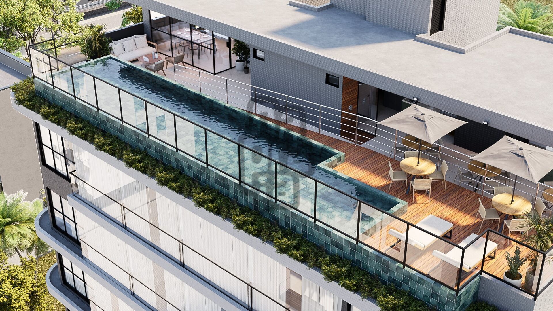 A área de lazer é um dos grandes destaques, com uma piscina na cobertura proporcionando uma vista espetacular do mar, onde você poderá desfrutar de momentos únicos, além de contemplar o nascer e o pôr-do-sol, transformando o simples ato de relaxar em uma experiência memorável.