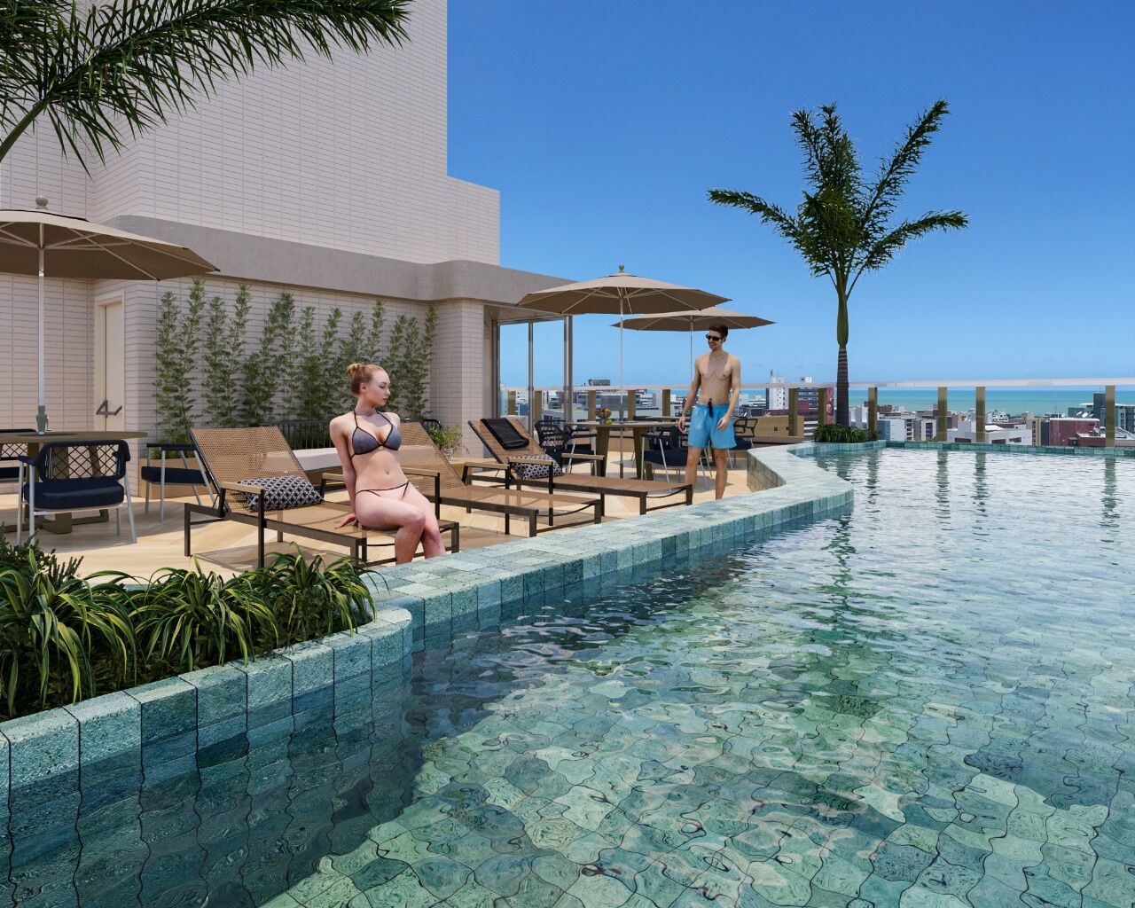 O empreendimento oferece uma estrutura de lazer, com áreas comuns projetadas para tornar seus dias mais agradáveis, onde entre os destaques, vamos ter o rooftop com vista panorâmica para o mar, que se torna um refúgio exclusivo e ideal para relaxar, contemplar o pôr do sol ou reunir amigos em um ambiente sofisticado e inspirador.